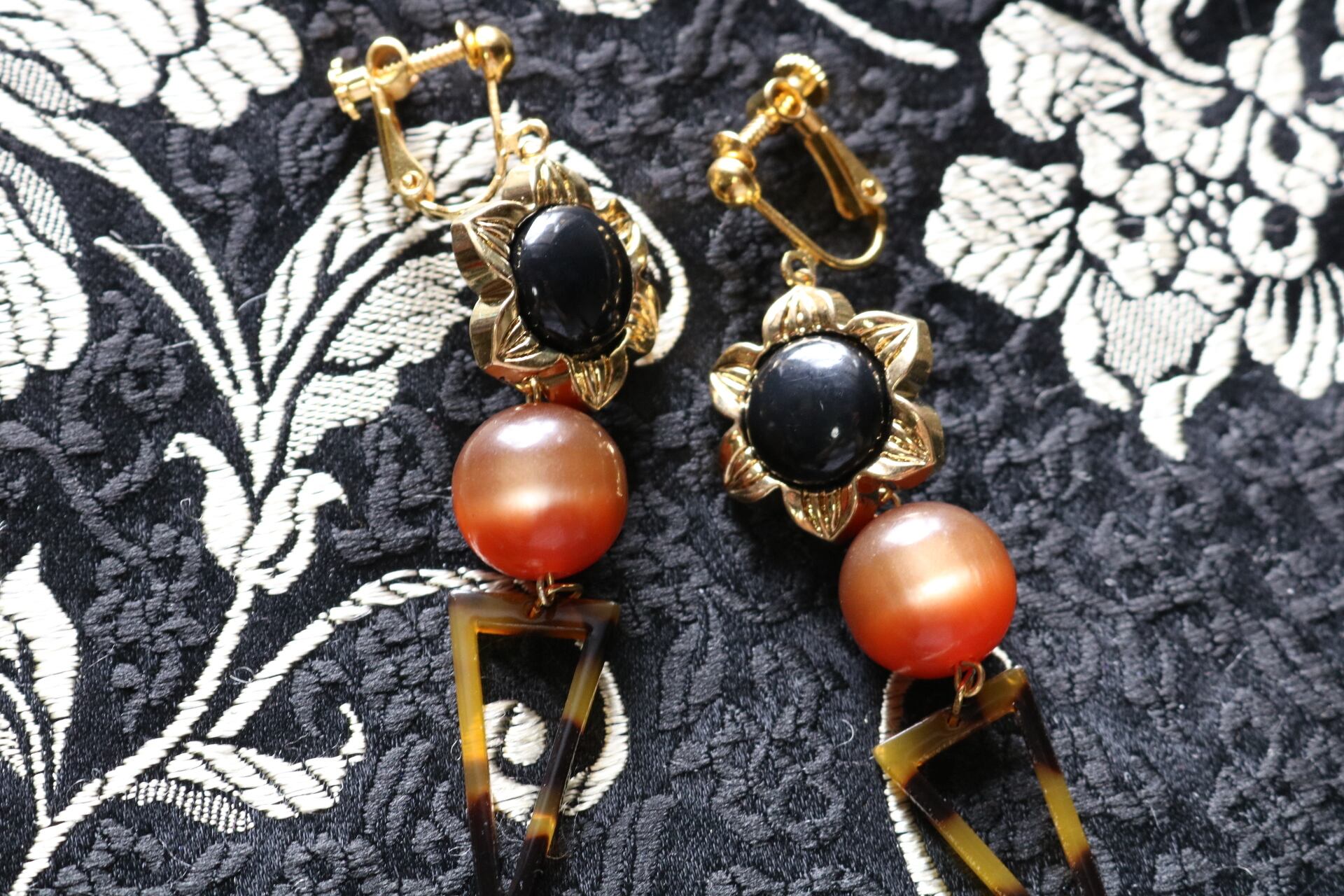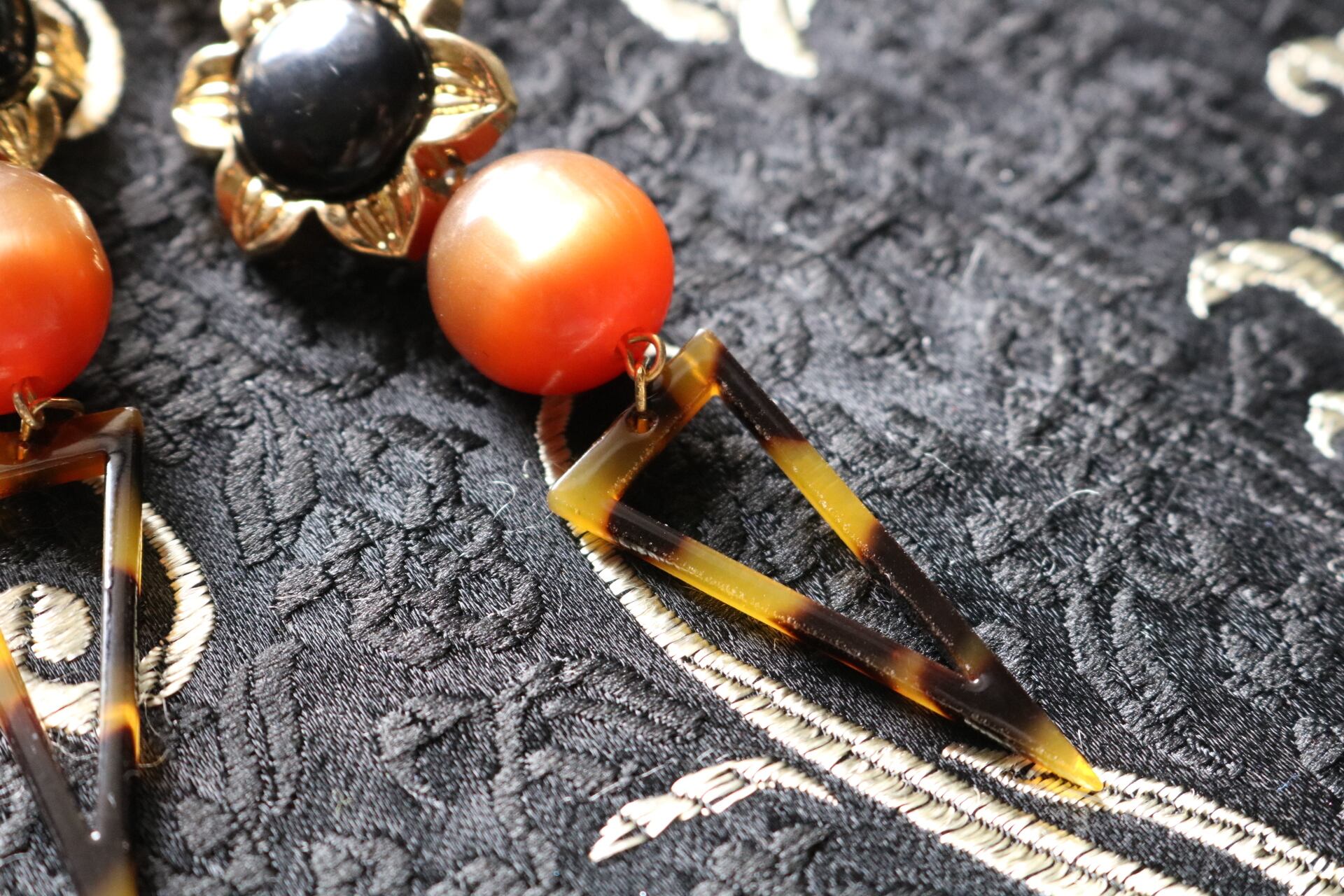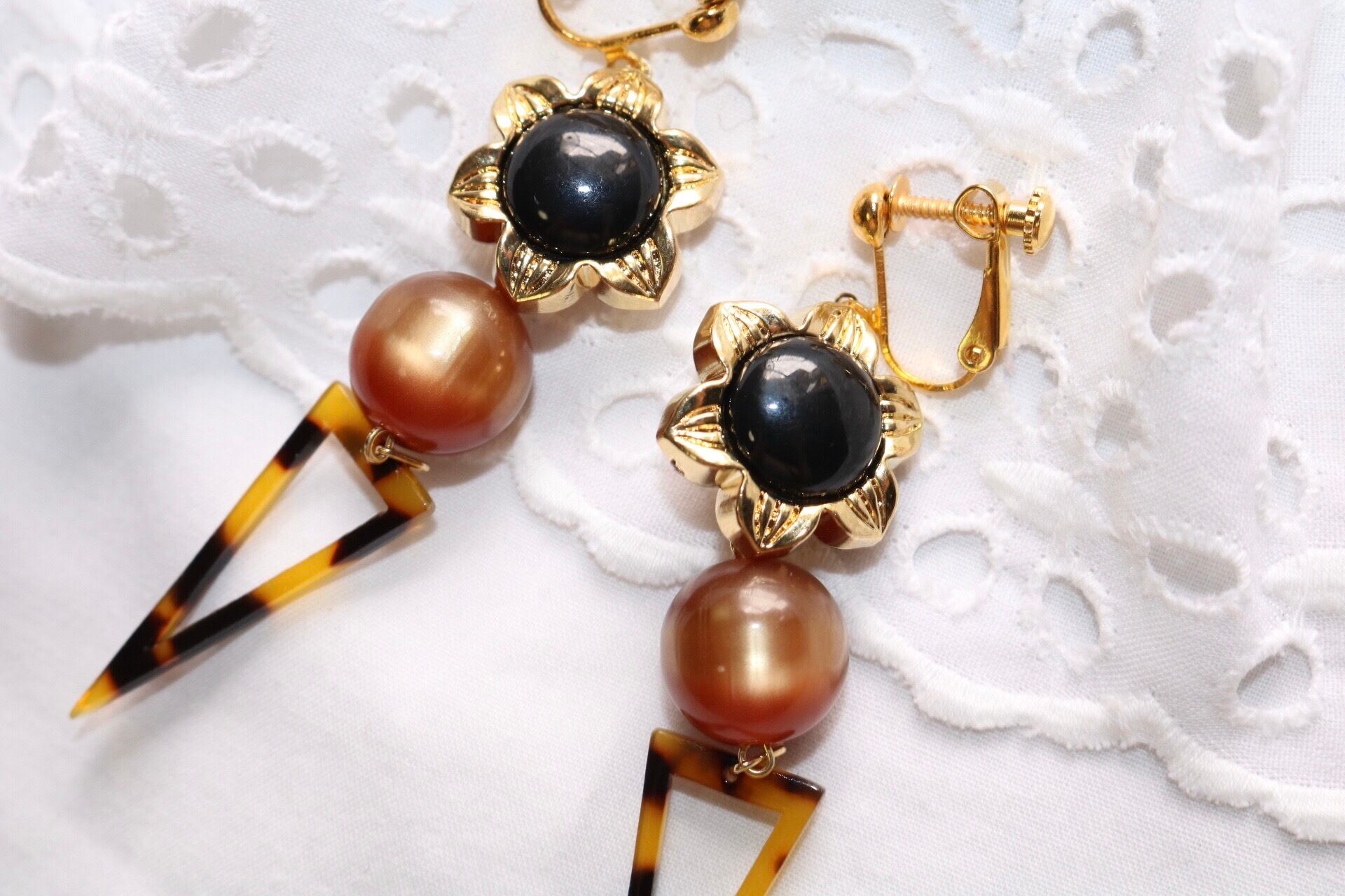 べっこう柄のトライアングルパーツを合わせたアクセサリーです。