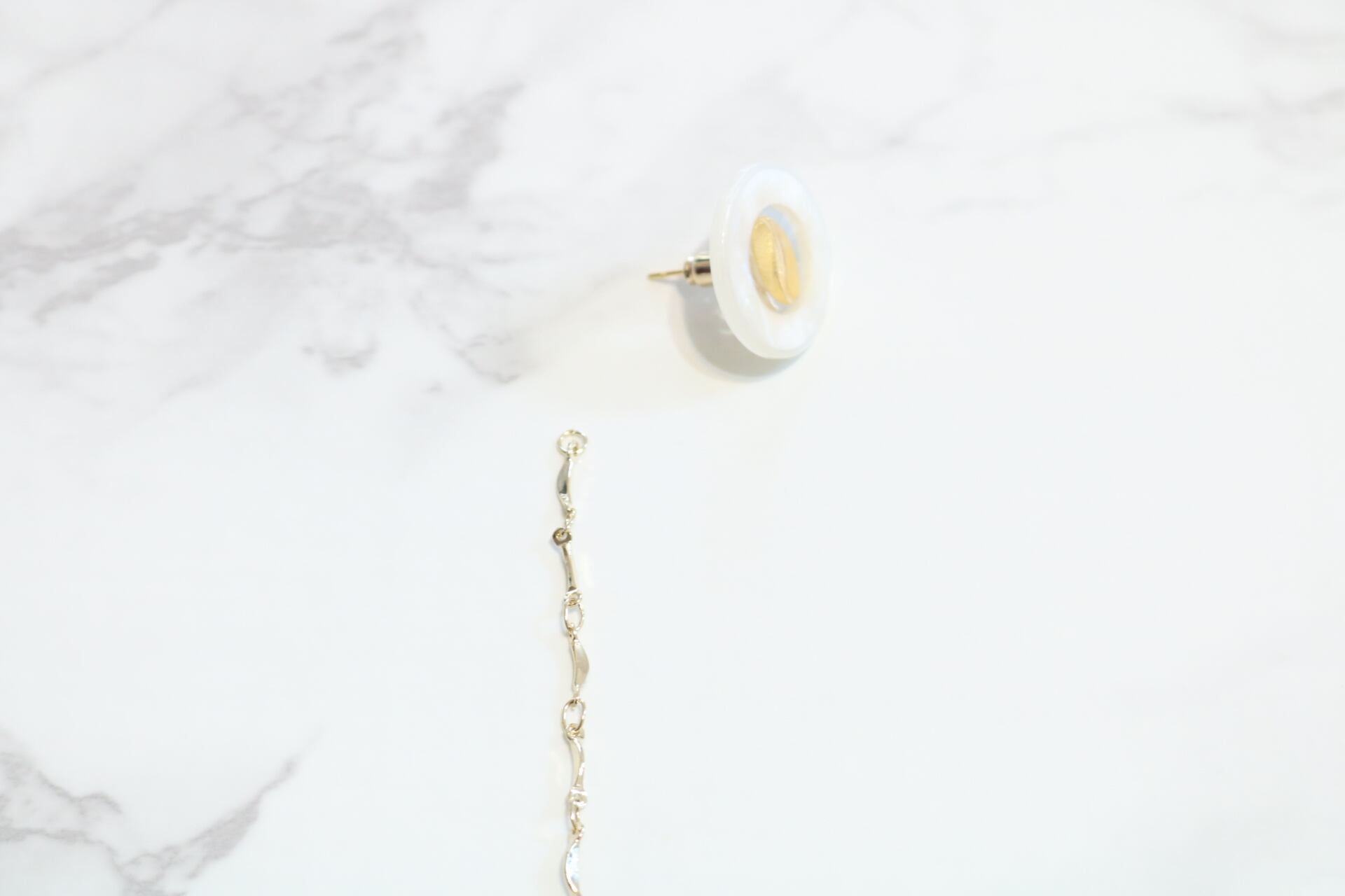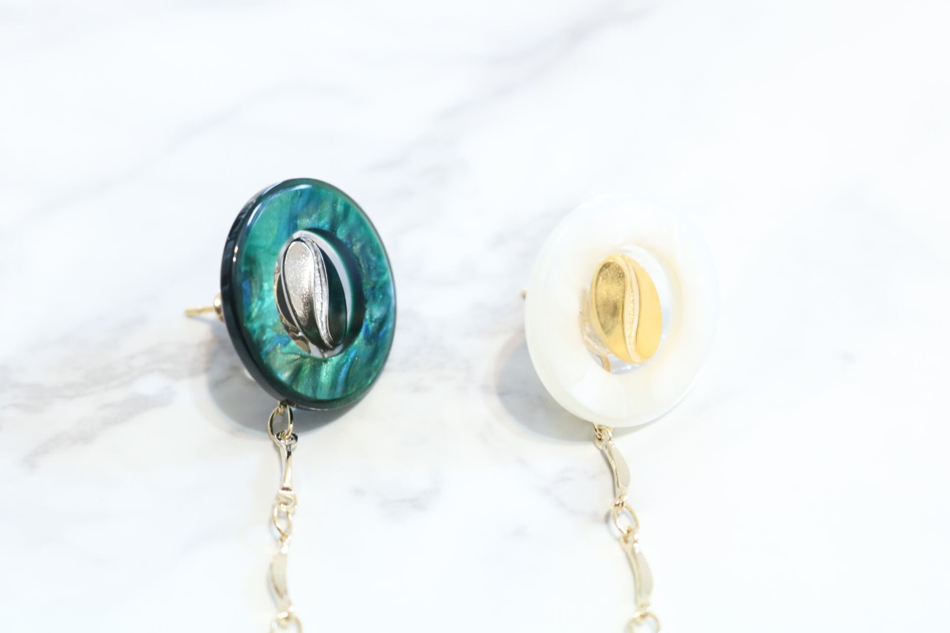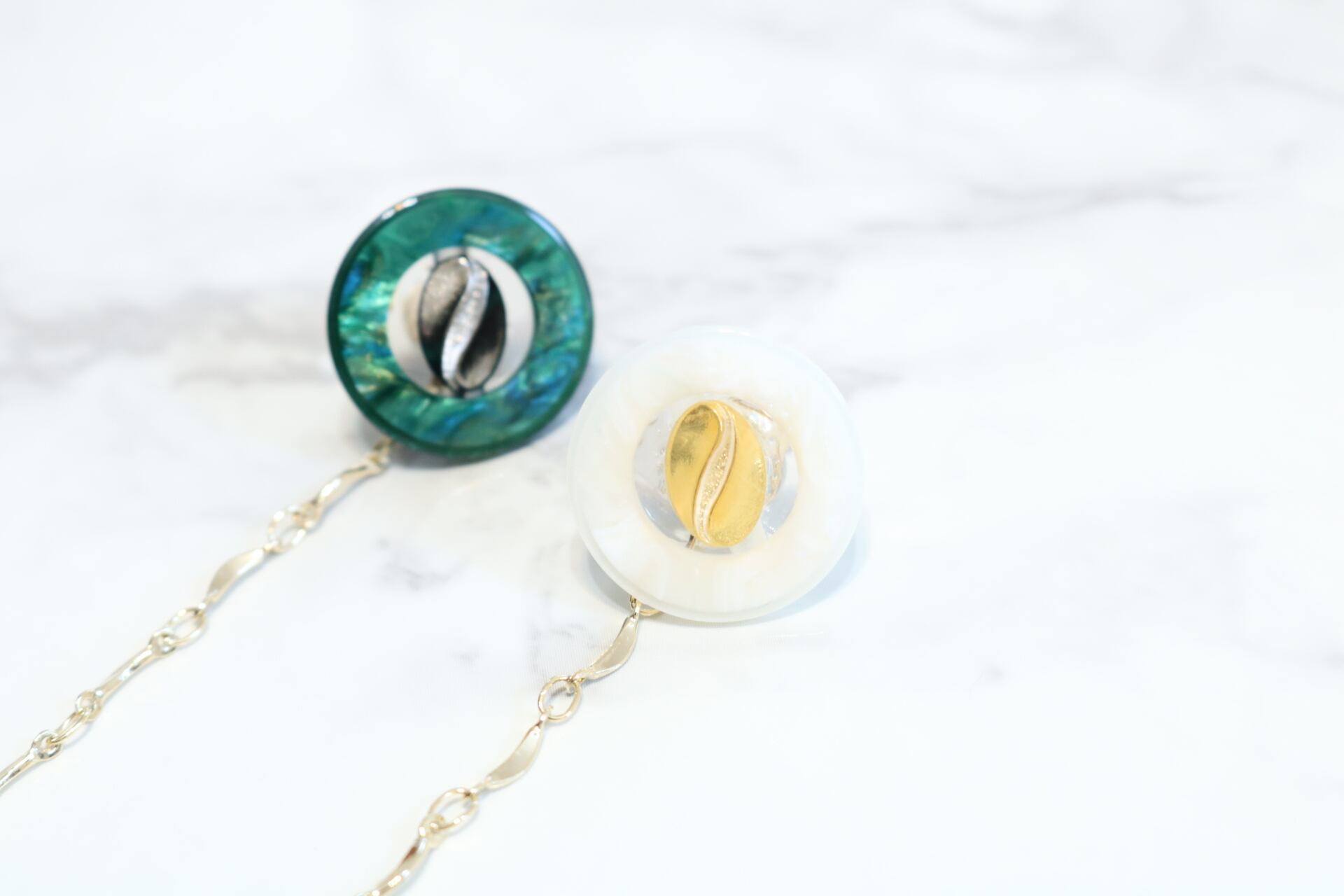 チェーンの先にはドロップ型のメタリックブラウンビーズが付いています。