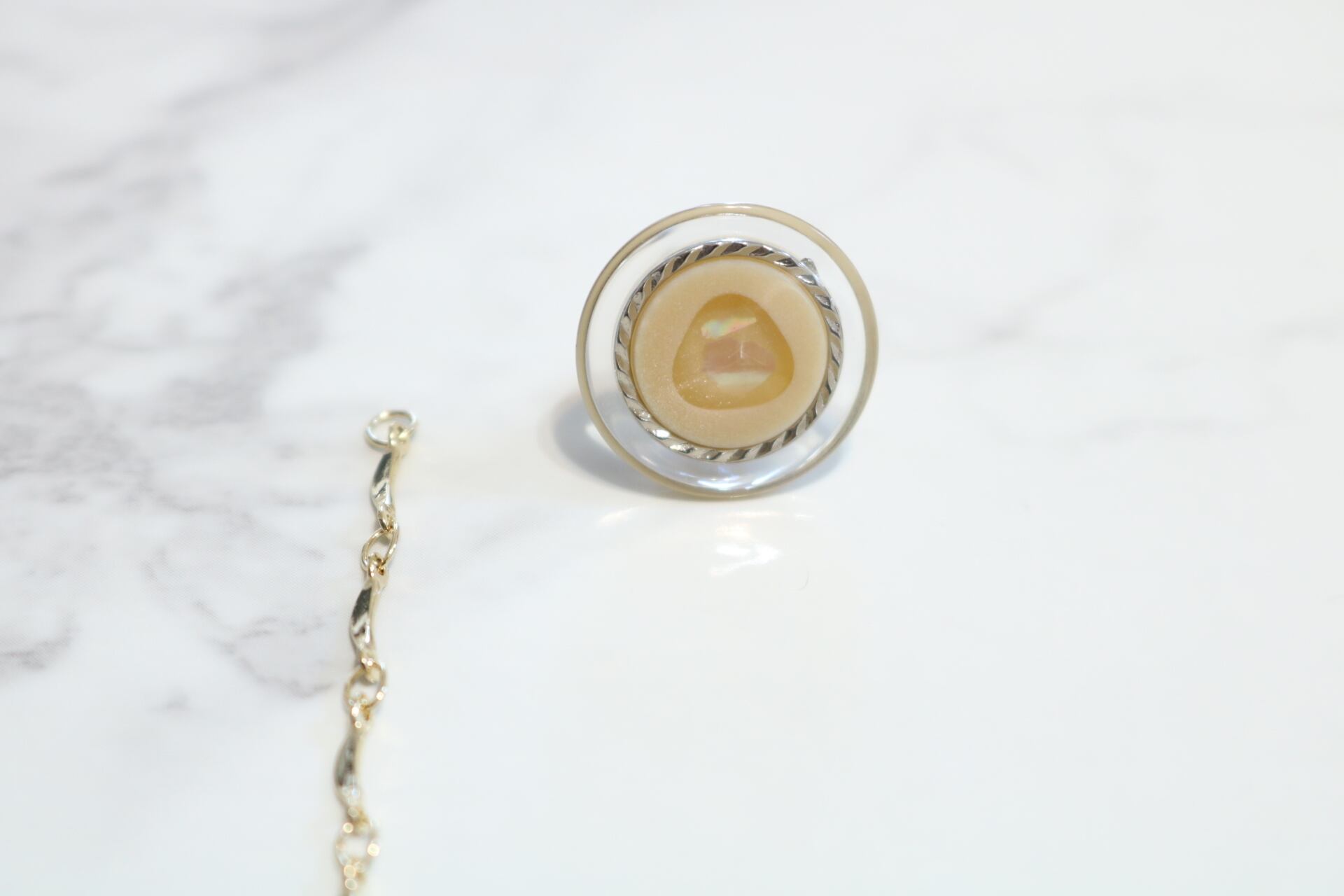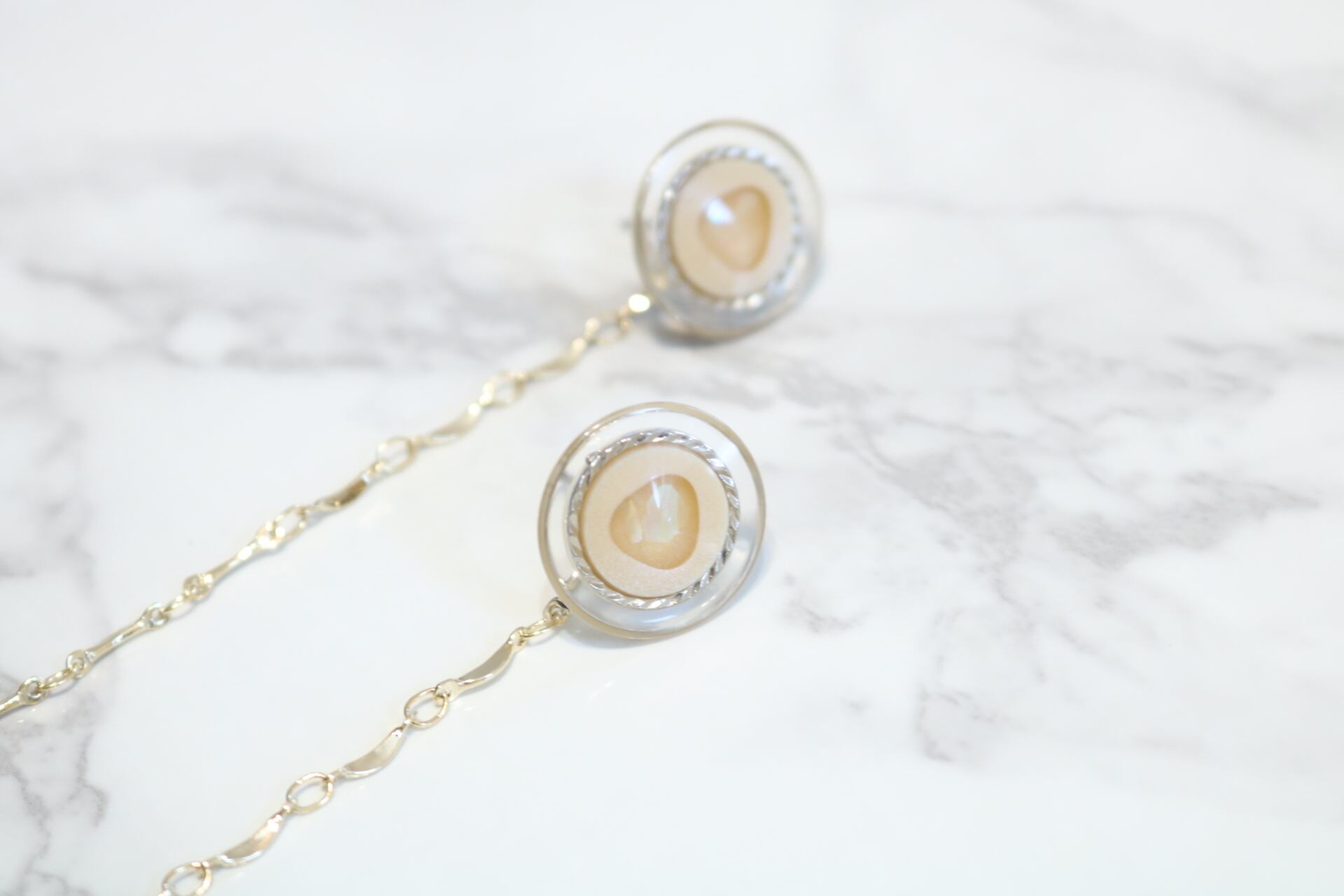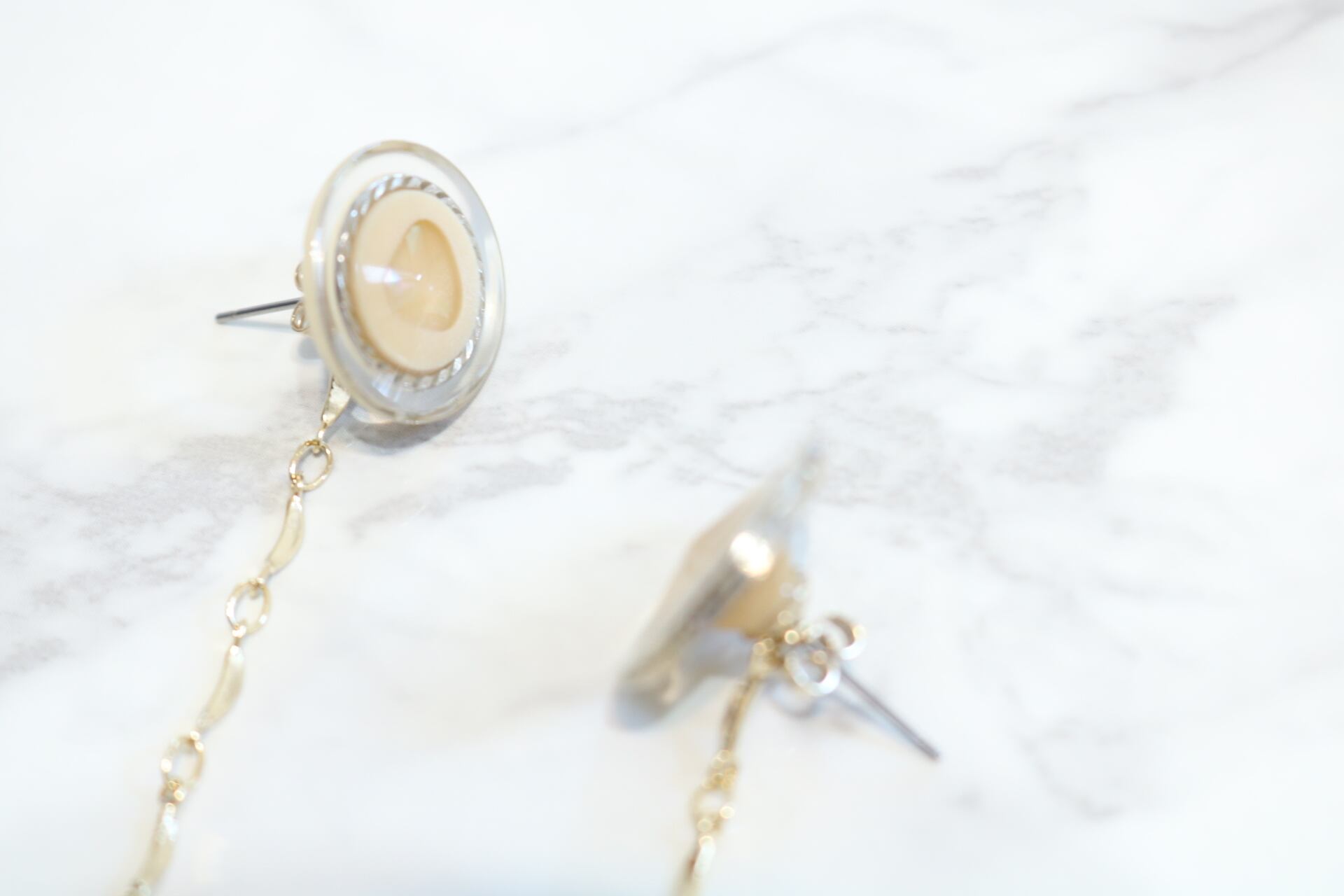 ベージュのシンプルなデザインボタンをつかったアクセサリー。