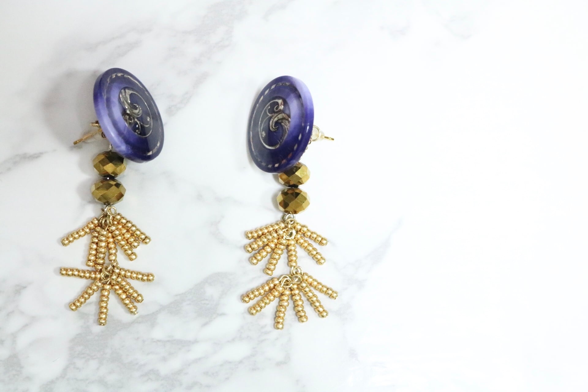 ピアスキャッチを変えればボタンのみでも使えるデザインです。