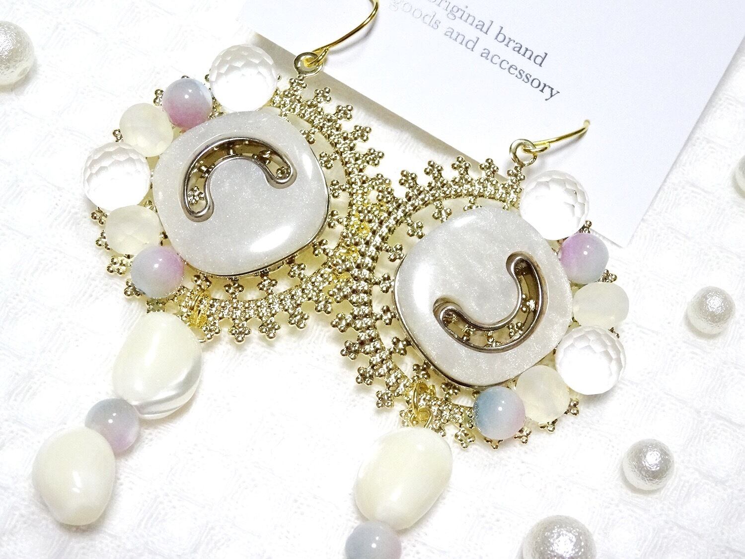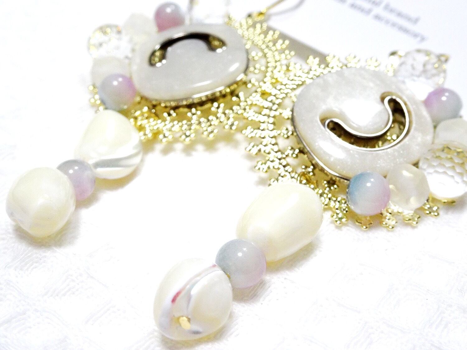 高瀬貝塗装ビーズ、ラウンドカットと磨りビーズをデザインし、