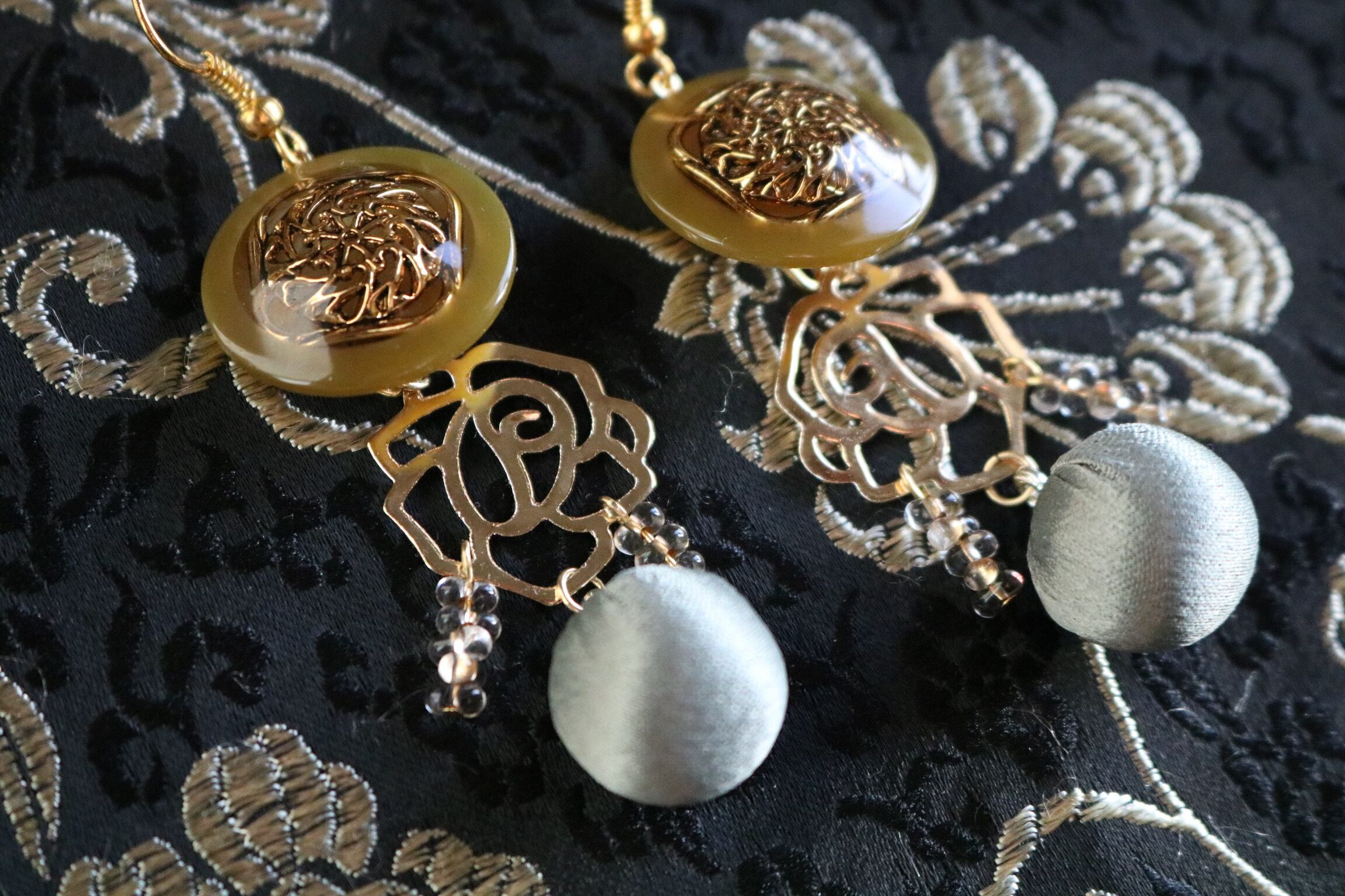 オリーブグリーン(ウグイス色)に繊細なゴールドがデザインされたボタンに、